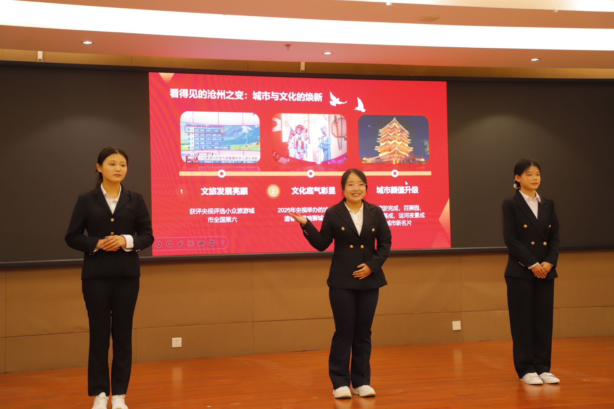 活动现场,选手们紧扣宣讲主题,结合专业特色与沧州地域文化,或深情讲述家乡变迁的动人故事,或畅谈技能报国的青春志向,或立足实践经历分享理论学习的真切感悟,将党的创新理论融入一个个鲜活的故事中,既有理论高度,又有情感温度,充分展现了新时代青年的责任与担当。现场气氛热烈,掌声不断,选手们的精彩表现赢得评委与师生的一致好评。经评审,评选出一、二、三等奖及优秀奖、优秀指导教师奖、优秀组织奖。(具体获奖名单见附表)